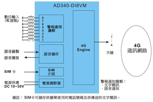 4G Alarm Caller-AD340-DI8VM 數位輸入*8 【文字簡訊/語音通報】