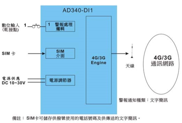 3G/4G Alarm Caller-AD340-DI1 数位输入*1 【文字简讯通报】